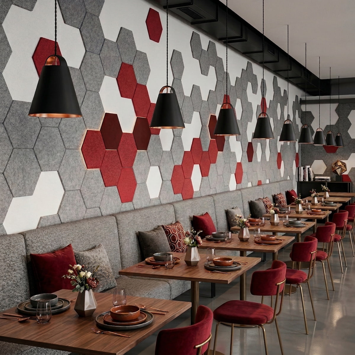 Tajemství našich panelů spočívá ve využití vysoce kvalitní akustické plsti (filcu). Tento prémiový a na dotek velmi příjemný materiál vyniká mimořádnou schopností pohlcovat zvukové vlny, snižovat dobu dozvuku a eliminovat rušivou ozvěnu. Ať už navrhujete reprezentativní zasedací místnost, stylovou hotelovou recepci, útulnou restauraci nebo moderní obývací pokoj, naše filcové panely vytvoří akusticky vyvážené prostředí, ve kterém se skvěle pracuje, konverzuje i odpočívá.